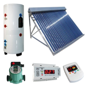 El kit incluye:  colector presurizado de 25 tubos, controlador de circulación, bomba de circulación, válvula no retorno.